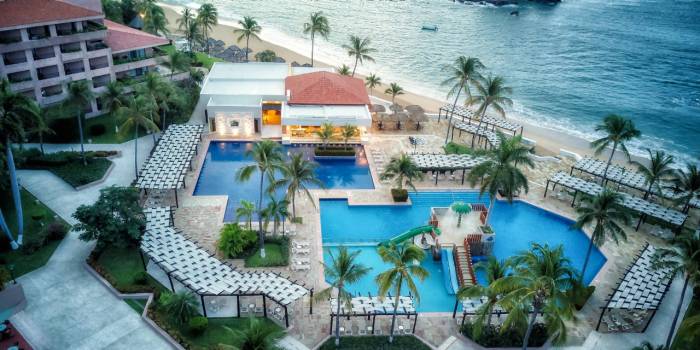 Hotel Castillo Huatulco es una propiedad de estilo colonial enmarcado por un espectacular paisaje de montaña con una exuberante vegetación. Localizado frente al muelle y a sólo unos pasos de la playa Santa Cruz, el Hotel Castillo Huatulco se convierte en una excelente opción para sus viajes de negocios o de placer. Su arquitectura le ofrece las más cómodas habitaciones, hermosos jardines y por supuesto el mejor servicio con la atención que usted se merece. 113 cómodas y espaciosas habitaciones con aire acondicionado, con un balcón que ofrece una fabulosa vista de los jardines.